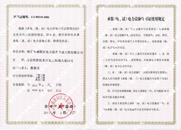 南京市棲霞區電力設備安裝工程有限公司是一家專業從事電力設計施工的民營企業。公司于1995年10月成立,2001年7月由棲霞區土產公司所屬“棲霞區電力設備安裝工程處”改制成南京市棲霞區電力設備安裝工程有限公司。